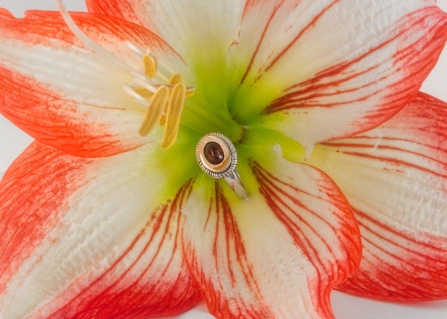 9ct rose gold setting holding a oval cabochon Almondine Garnet 8.6mm.